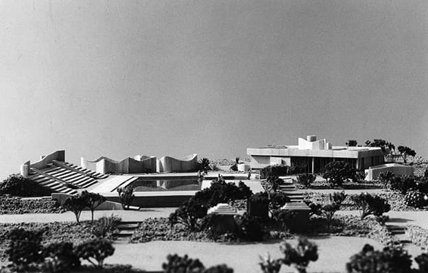 Ljósmynd: Tillaga Högnu að Rútstúni sundlaugum og almenningsgarði í Kópavogi, séð úr suðri (ljósmynd af líkani, 1964), ljósmynd©Högna Sigurðardóttir Anspach