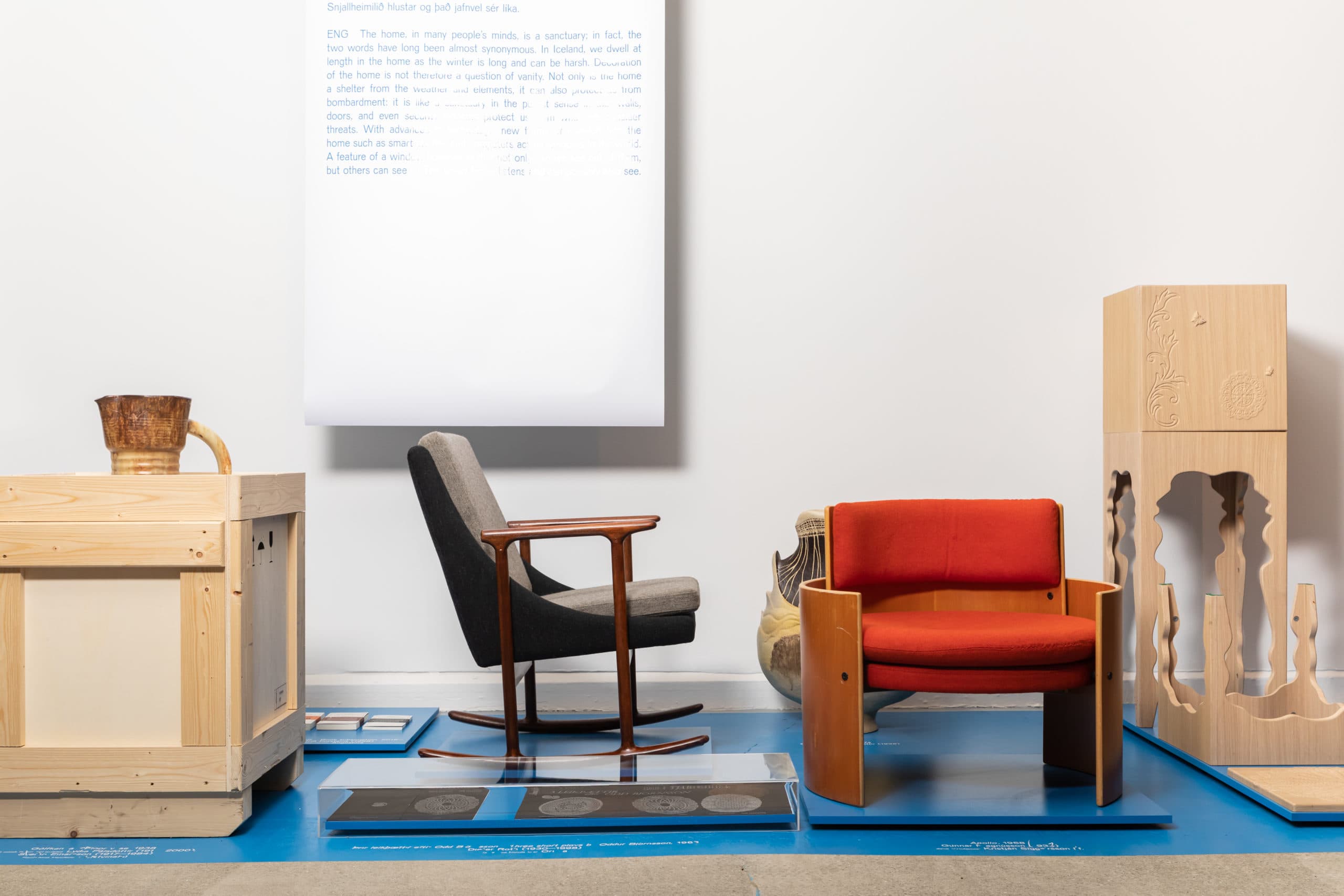 Furniture, tableware, books and textiles are displayed and exemplify a fraction of what Icelandic designers and artisans have been creating.