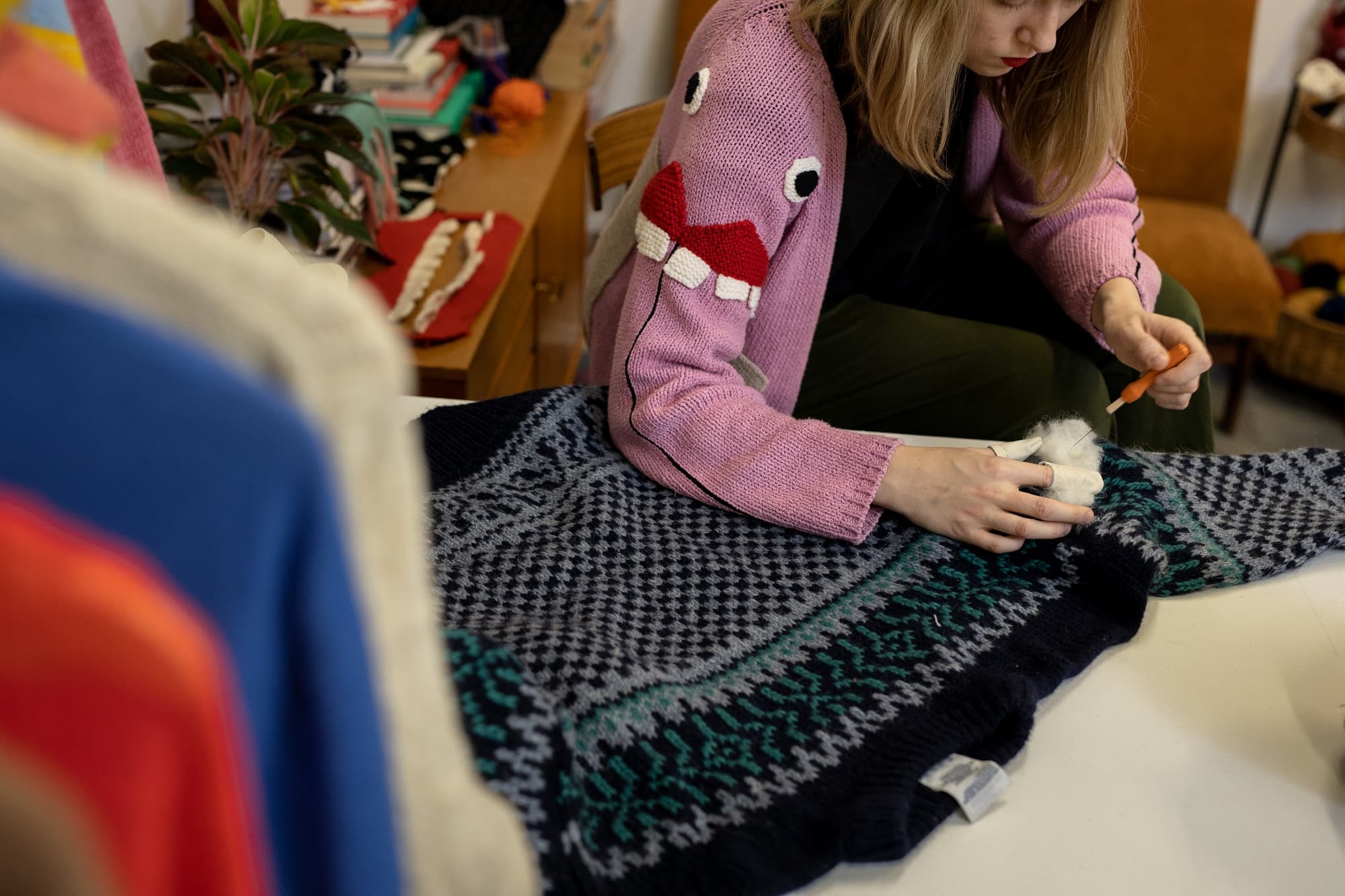 There is always a good pile of jumpers that goes into this category at the Red Cross so this time Ýr’s aim is to get more people involved in the mission to save them. Continuing to use creative mending methods and sharing them with others will make the mending process and result more personal, more fun and more powerful.