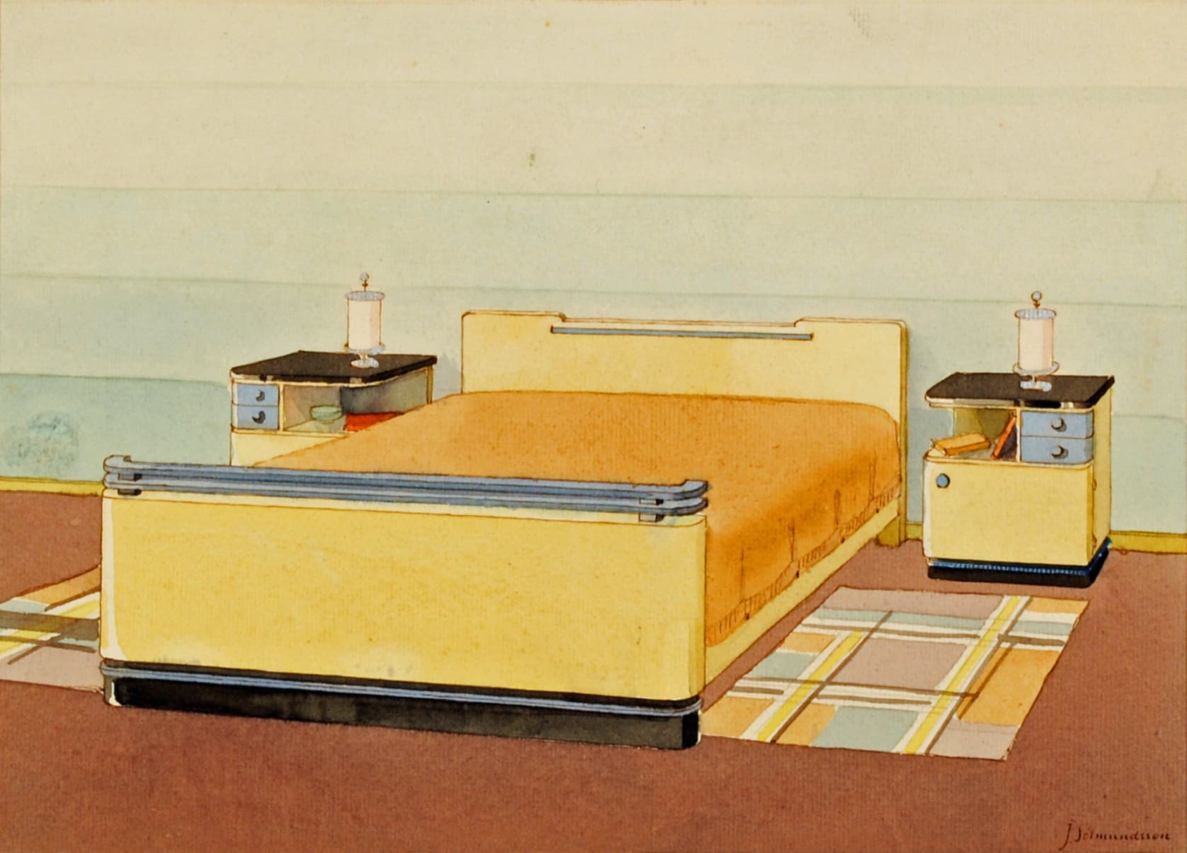 Photo: Jónas Sólmundsson’s watercolor of bedroom furniture, ca. 1929.