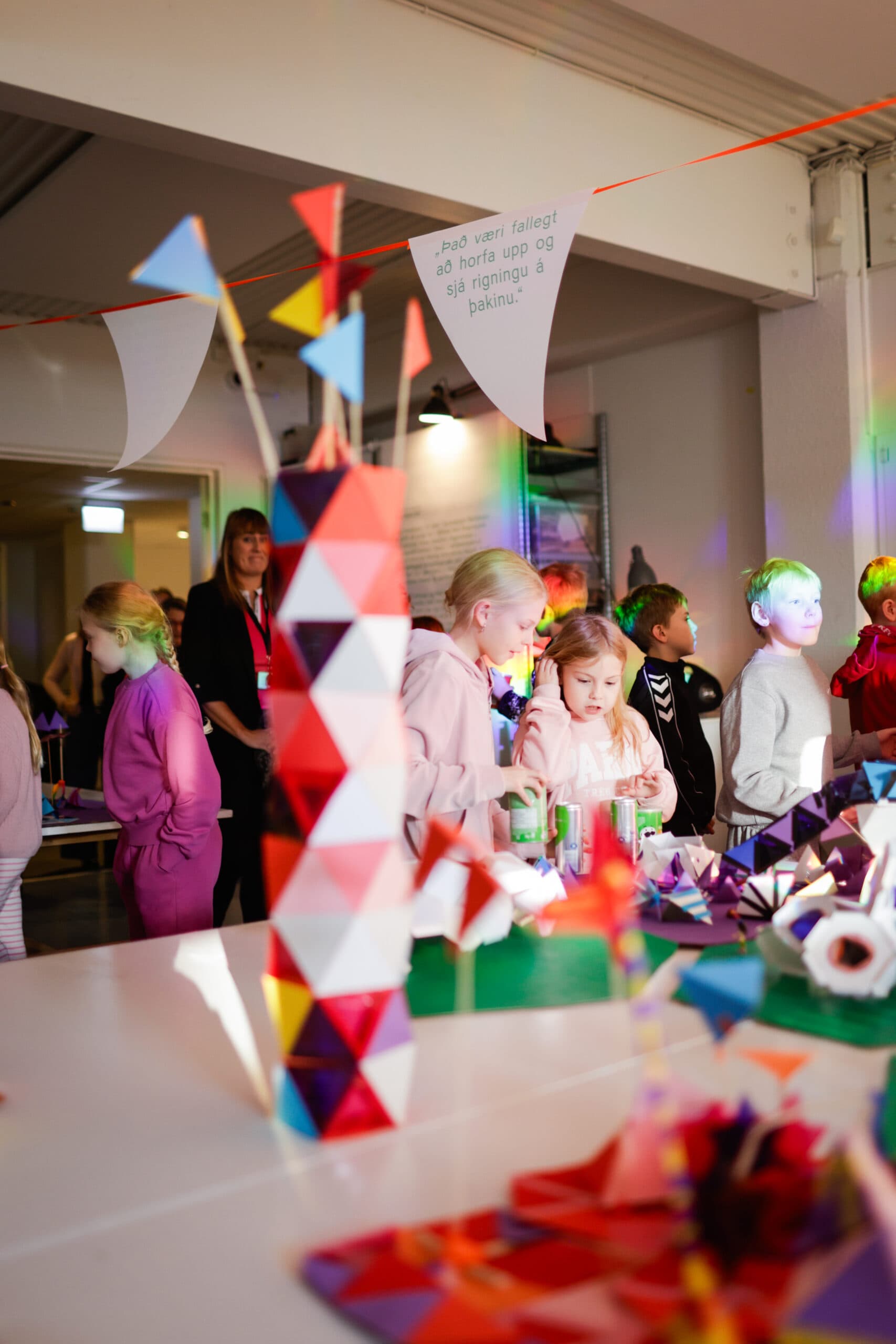 The Dream Village is an educational project connected to the ongoing archiving of works by architect and designer Einar Þorsteinn Ásgeirsson . During school visits, students in 4th grade in Schools in Garðabær were invited to step into the magical world of this imaginative and experimental pioneer. They learned how he devoted his life to mathematical research, which among other things resulted in a new form — the golden fang — used in the glass façade of Harpa Concert Hall.