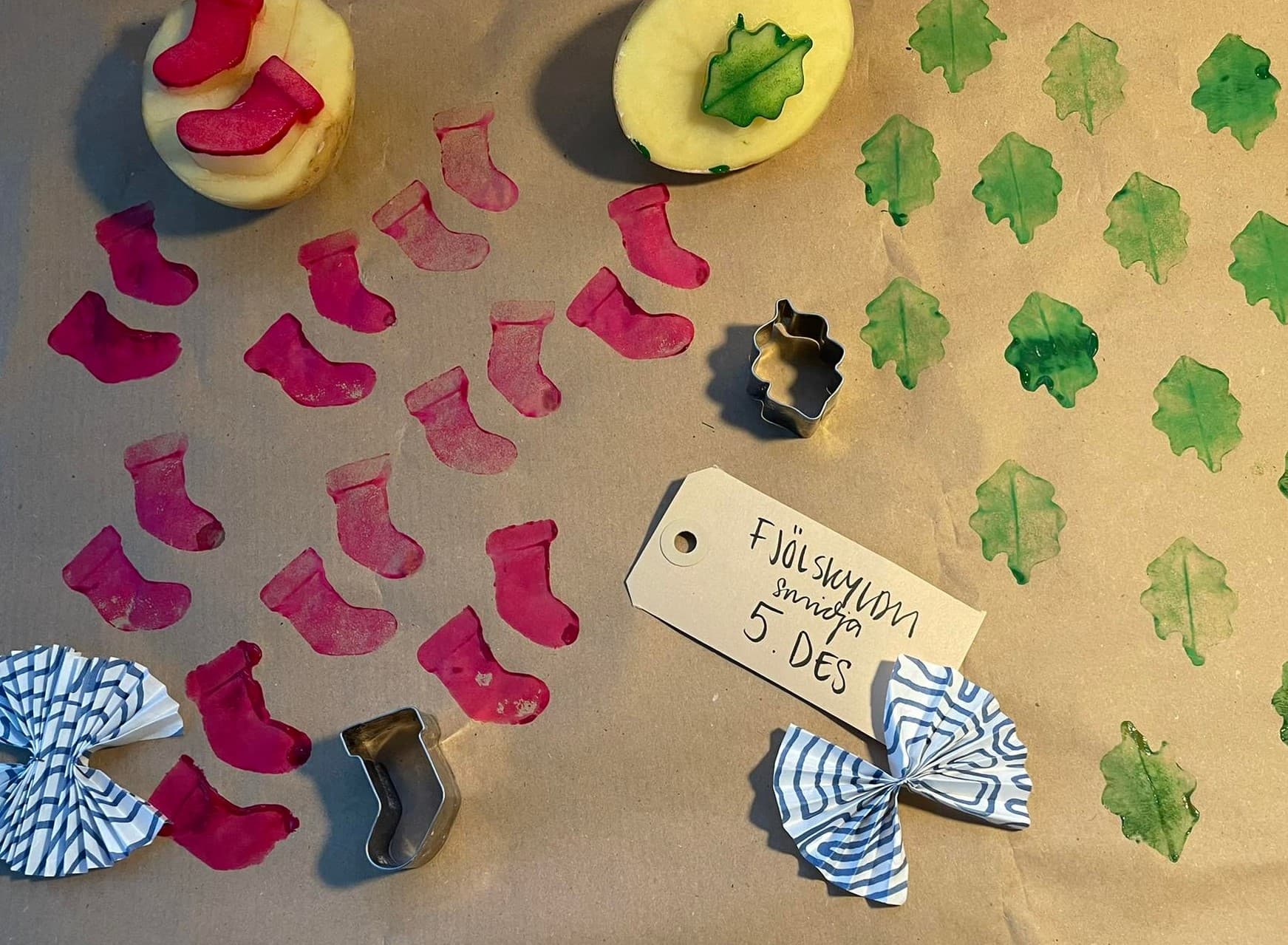 The traditions and customs around Christmas have changed a lot from the settlement to the present day. In the workshop, we will especially look at Christmas gifts, which are of course the most exciting things about Christmas. In the heathen, feasts were held around Christmas, good food was eaten, and rulers sometimes gave presents to their families. In the second half of the 19th century, Christmas begins to take on the form we know today and Christmas trees and cookies pop up. Christmas presents also became common in homes, but before that people had rather given summer presents on the first day of summer. A few years later, the Santas also adopted better manners, stopped teasing and stealing, and even started giving children small gifts in their shoes. But how have Christmas gifts changed over time? What did children receive as a Christmas present 100 years ago and when did people start wrapping presents in Christmas paper? We are going to talk about all this and subsequently create our own Christmas paper with potato stamps and other exciting material.