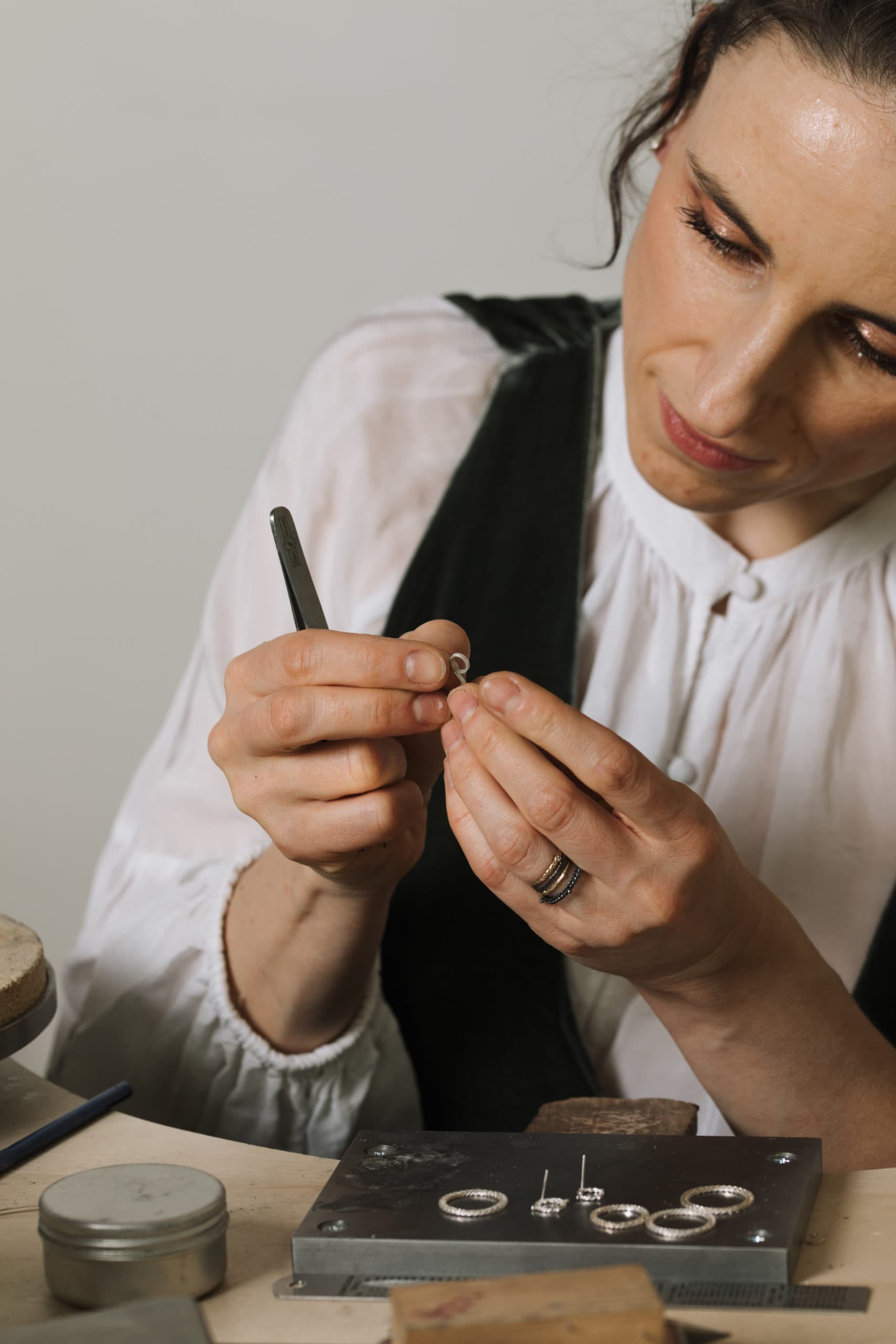 Marta is a trained landscape architect and goldsmith. Before moving to Iceland, six years ago, she worked for the Polish army and was stationed in Afghanistan. She graduated earlier this year as a goldsmith from Tækniskólinn in Reykjavík and currently works at Aurum as a goldsmith. Dóra Jónsdóttir, a filigree master, introduced Marta to the making of filigree and encouraged her to pursue studies in goldsmithing. Filigree is the common thread in Marta’s work. The technique can be traced back to, ancient Egypt, Greece, and Rome. Filigree also plays an important part in the Icelandic national custom. The motifs are often based on flowers and plants which relates to Marta´s background in landscape architecture. Designers continue to explore the potential of this delicate craftsmanship in contemporary jewelry.