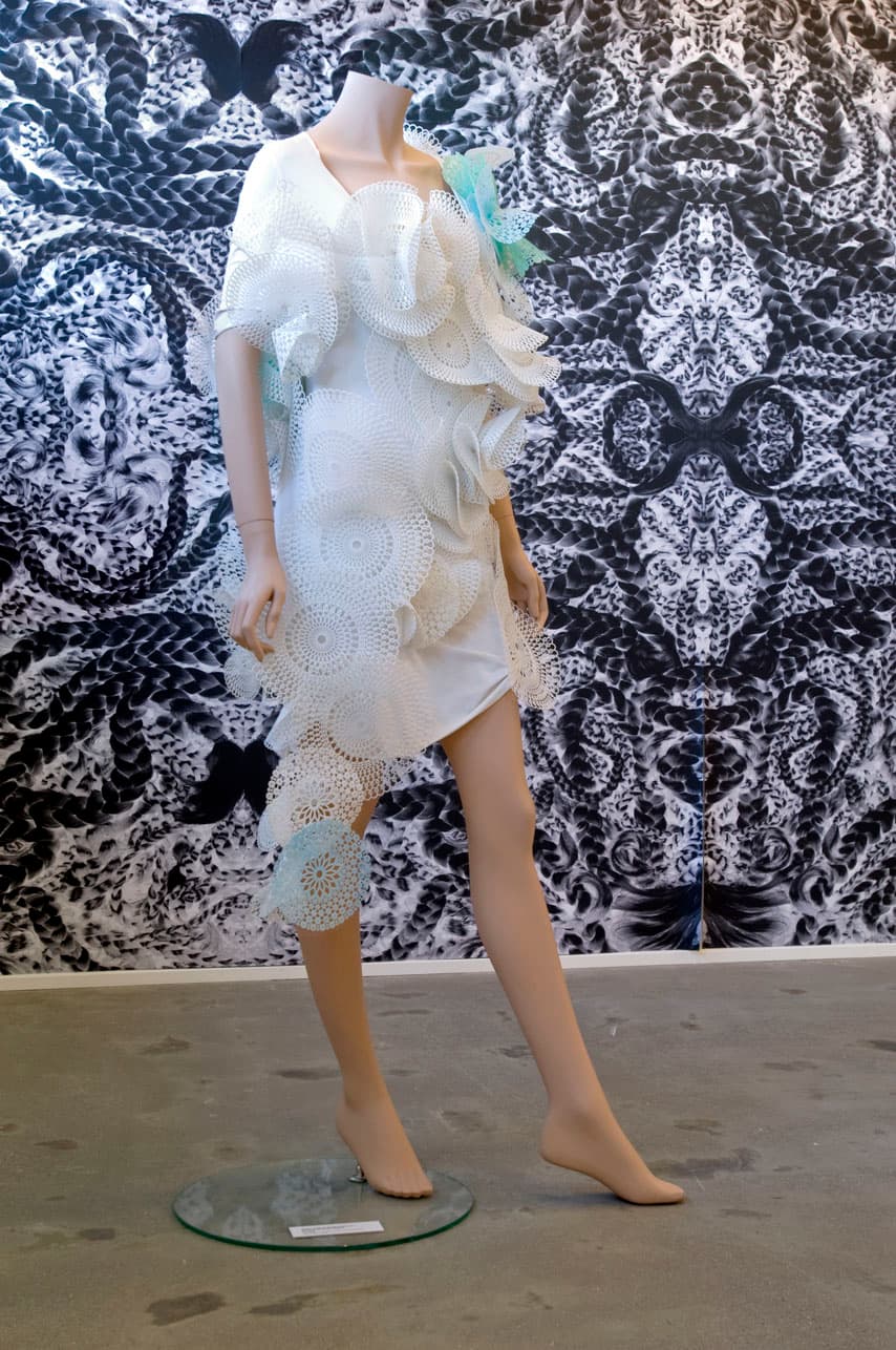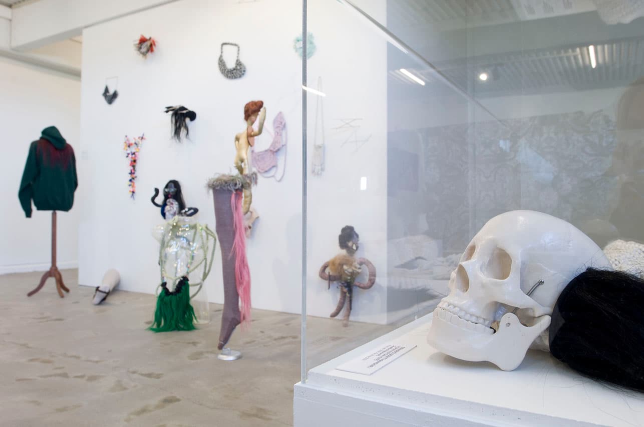 Fatnaður, grímur og skúlptúrar eftir Hrafnhildi og samstarfsaðila hennar er vissulega skapað úr óhefðbundnu efni á tímum endurnýtingar og umhverfissjónarmiða. En þessi sköpun er ekki síst til þess fallin að varpa ljósi á ýmis óræð mörk í menningarsamfélögum. Þess sem er viðtekið á einum