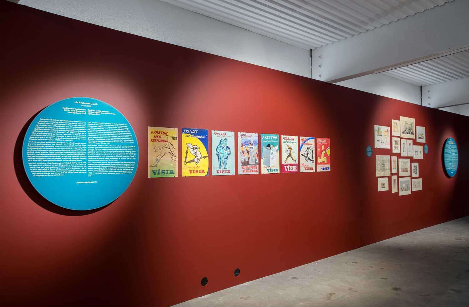 Jón Kristinsson bóndi og listamaður, betur þekktur sem Jóndi í Lambey, vann um árabil að auglýsingateiknun fyrir Rafskinnu eða allt frá 1941 þegar hann tók við keflinu af Tryggva Magnússyni teiknara, til ársins 1957 þegar Rafskinna hætti. Á sýningunni eru nokkrar auglýsingar sem Jóndi teiknaði fyrir dagblaðið Vísi um árabil og eru í safneign safnsins.