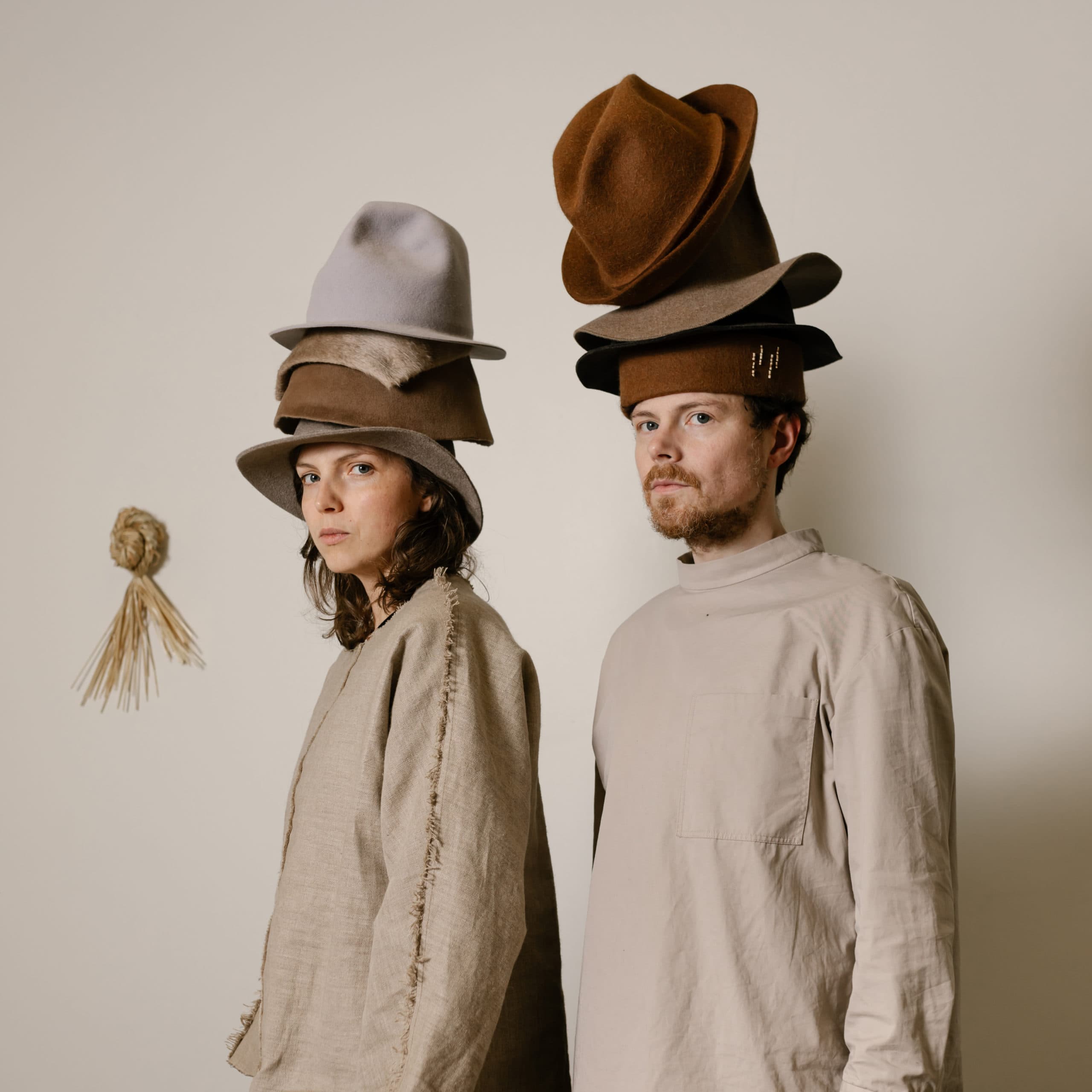 Í Hönnunarsafni Íslands munu þau vinna að hattagerð með nýmóðins og hefðbundnum handverksaðferðum í bland. Í hattana nota þau m.a. strá, leður og filt og móta efnin með gufu og trémótum.