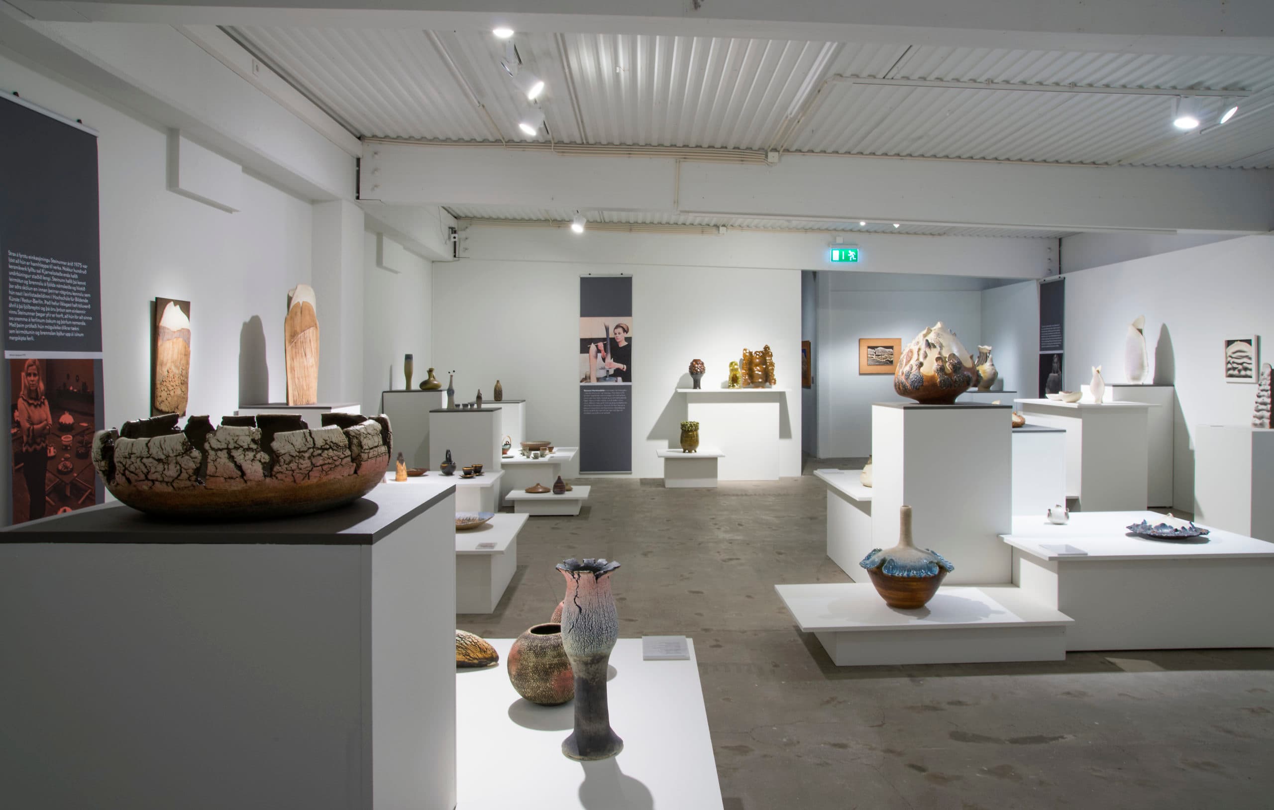 Hönnunarsafn Íslands efnir til yfirlitssýningar á leirlist Steinunnar Marteinsdóttur. Steinunn er einstakur leirlistamaður í íslenskri hönnunar- og listasögu. Hún hefur á 55 ára ferli skapað afar persónulegan stíl með verkum sínum sem hún hefur mótað og unnið með krefjandi hætti. Á fyrstu einkasýningu sinni árið 1975 markaði Steinunn þau þáttaskil í íslenskri leirlistasögu að sýna íslenskt landslag á afgerandi hátt með stórum og smáum skúlptúrvösum og veggmyndum. Afköstin hafa verið mikil og sköpunarþátturinn oft á tíðum dirfskufullur. Sé horft yfir feril hennar á þessum tímamótum má líkja honum við endalausa könnunarferð, þar sem öllu því sem má líkja við vanafestu og stöðnun er storkað.