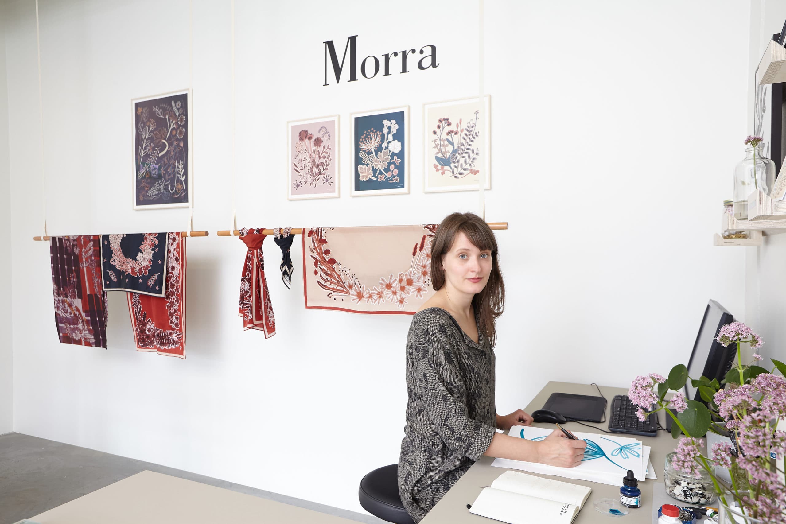 Signý Þórhallsdóttir hefur dvalið í Hönnunarsafni Íslands undanfarna mánuði með vinnustofu þar sem hún hefur verið að þróa og framleiða vörur úr silki og ull fyrir vörumerki sitt Morra. Nú fer að koma að lokum vinnustofudvalarinnar og ætlum við að skála fyrir Signýju og þakka henni fyrir einstaklega góða samveru. Því verður haldin uppskeruhátíð föstudaginn 20. september kl. 17.30 í Hönnunarsafninu. Til viðbótar við silkislæðurnar hafa nú bæst dásamlegar ullarslæður og sparisloppur þar sem íslenska flóran er enn í aðalhlutverki. Verið þið hjartanlega velkomin.