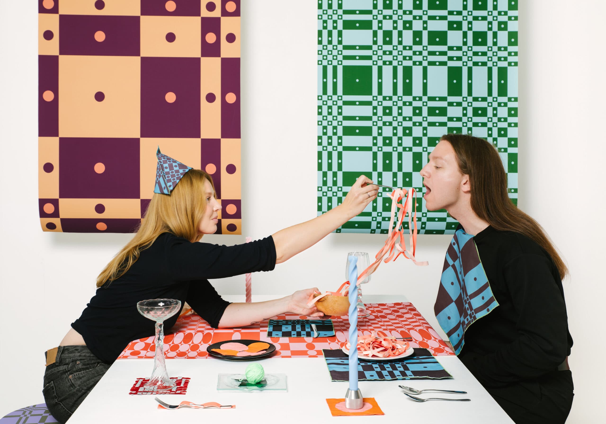 Matarboð í smiðju Hönnunarsafnsins þar sem framsetning matar tekur mið af Skraf mynstrunum. Hönnuðurnir KE&PB (Katla og Patrekur) setja sig í hlutverk gestgjafa og skoða hvernig mynstrin geta mætt þrívídd og æti og hvaða samtal það býður upp á. Fer það samtal fram í mynstri? Við biðjum gesti að hafa ekki olnboga uppi á borðum, teygja sig ekki yfir matarborðið og í Guðs bænum tölum ekki með fullan munninn!